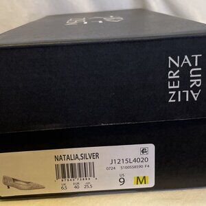 Naturalizer Natalia Kitten Heal Silver Snakeskin Women's Size 9 M New Pointed Toe