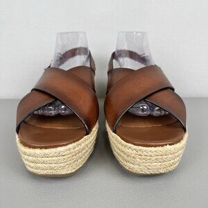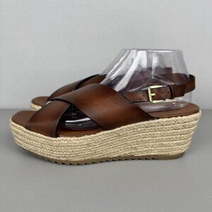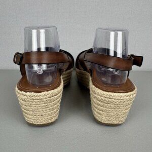 Naturalizer Oak Leather Open Toe Wedge Espadrilles Sandals Brown Womens 11 W