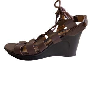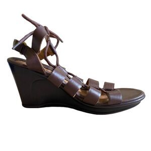 Naturalizer Onward Strappy Lace Up Wedge Sandals Women's Size 5 Brown Leather
