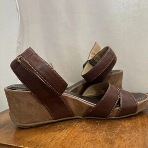 Naturalizer Panya Brown Suede Leather Synthetic Nubuck Wedge Sandals Size 8 M