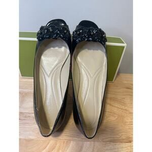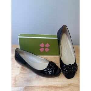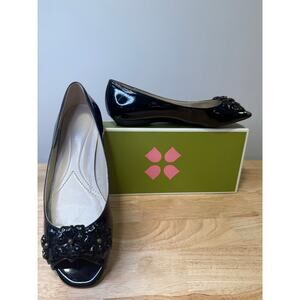 Naturalizer Peep Toe Shiny Black Black Man Made Shoes 3D Flower Appliques 8.5 JL