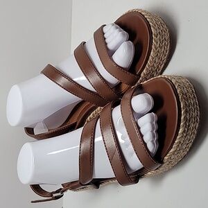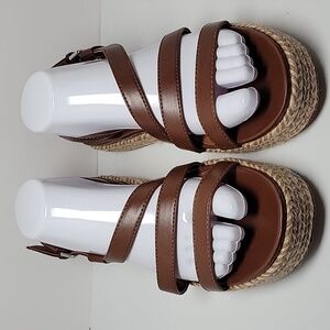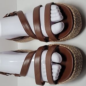Naturalizer Peridot Espadrille Platform Sandal Shoe Straps Brown Faux Leather 9