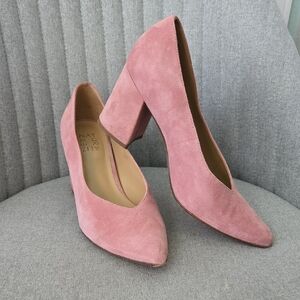 Elegant pink suede heels. Chunky block heel. Perfect for any occasion.