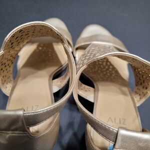 Naturalizer Platino Shimmer Gold Bethan Ankle Strap Open Toe Heels Size 7.5