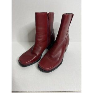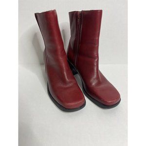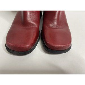 Stylish red ankle boots. Comfortable block heel. Side zipper closure.