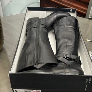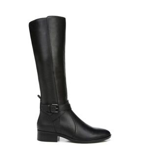 Comfort put simply. This knee high riding boot is going places with its decorative straps, buckle accent and side zip closure for easy entrance. Get there beautifully. Knee high riding boot with polished straps and buckles. Leather or leather/suede upper with an almond toe. Side zip closure. Wraparound straps and buckle details. Contour+ technology for a premium fit and all-day comfort experience. Soft fabric lining. Removable insole, non-slip outsole. Consciously packaged: 100% of our shoe boxes are made of 80% recycled paper + soy-based ink. WHY YOU'LL LOVE IT: Ingenious elegant utility. Boots crafted with endless versatility and style to get you there beautifully. Available in an inclusive size range of tough-to-find sizes and widths for a custom-designed fit and feel for all-day wear.
