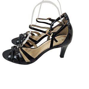 Naturalizer Sandals Women Size 8M Black Patent Leather Strappy Heeled Buckle