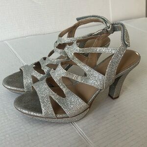 Naturalizer Silver Glitter Sparkle Dianna Heeled Sandal, size 7 @