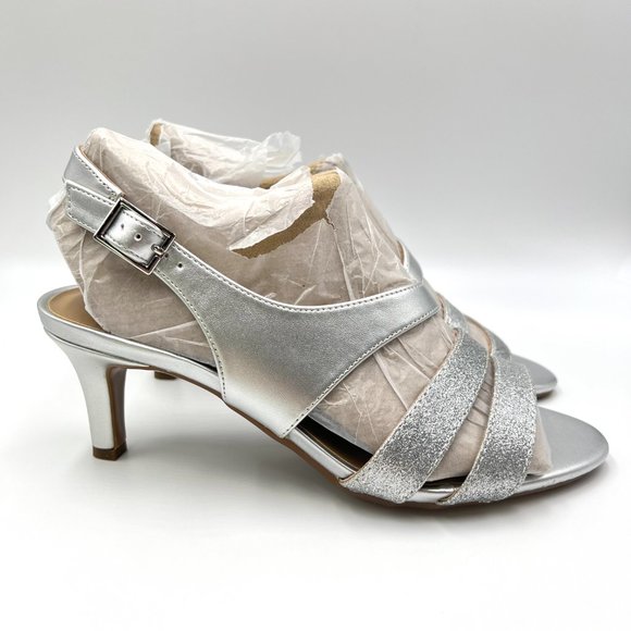 Naturalizer women's Taimi metallic silver glitter strappy dress sandals / heels.