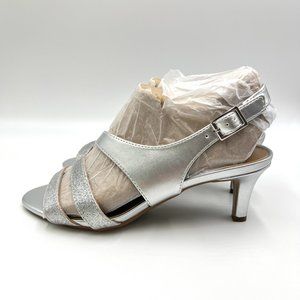 Naturalizer Size 7.5 Silver Metallic Glitter Strappy Dress Sandals Heels Shoes