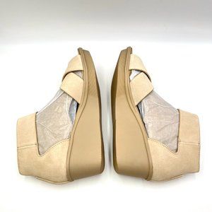 Naturalizer Size 8 Riviera Tan Nude Beige Sand Suede Leather Wedge Sandals Shoes