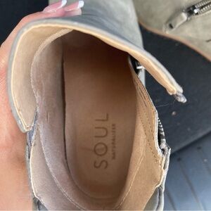 Exceeds your every expectation. A side zip closure, cool wedge heel and treaded, sawtooth outsole completes this trend-right wedge bootie for women from SOUL Naturalizer. Inspired by the way you live. Elevated women's ankle bootie with wedge heel. Manmade upper with an almond toe. Side zip closure for easy on/off. All-Thru Comfort: soft foam lining, arch support with memory foam, lightweight and flexible outsole. Designed using sustainable materials. WHY YOU'LL LOVE IT: Ingenious relaxed utility. Unstructured, uncomplicated styles thoughtfully designed with your comfort in mind so you can live in the moment.