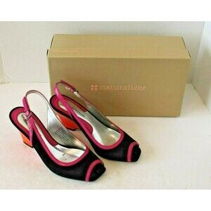 Naturalizer Speak Easy Slingbacks Sandals Black Pink Orange Shoes w/Box Sz 6 M