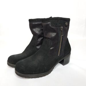 Naturalizer Suede Leather Boots 8.5 Black Faux Fur Lining Round Toe Zip Closure