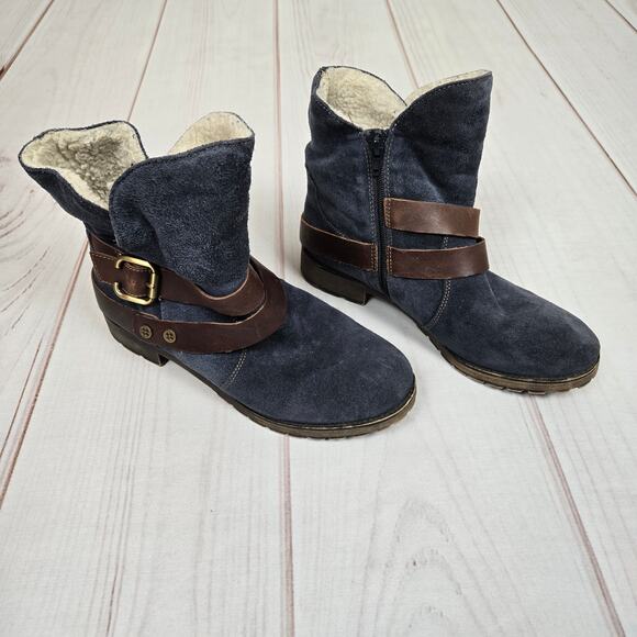 Naturalizer Talley Suede Sherpa Moto Boots Navy 8.5W