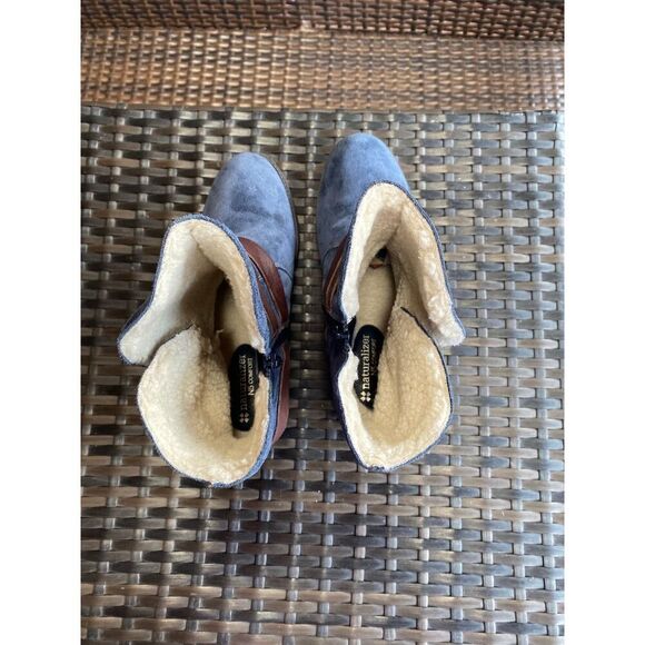 Naturalizer Tally boots womens size 8 in good pre owned condition normal wear and tear the color is navy blue show signs of wear on the tips of the toes and on the bottom of the shoes. See pictures for more details overall in good condition.