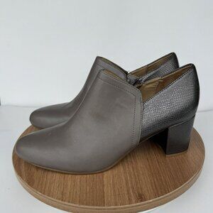 Naturalizer Taupe & Metallic Gray Leather Block Ankle Boots Heels Size 9.5