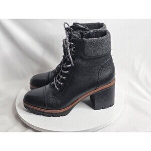 Naturalizer Varuna Black Leather Combat Lace Up Chunky Ankle Boots Women Sz 8.5