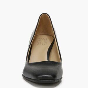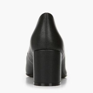 A square toe updates a classic leather pump grounded by a walkable block heel.