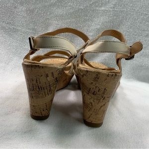 Naturalizer N5 Comfort Cream Off White Cork Wedge Beaded Detail Sandal Leather Upper