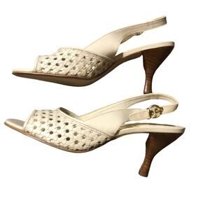 Naturalizer Woman 9M Ivory Open Toe Slingback Heels Dressy Office Professional
