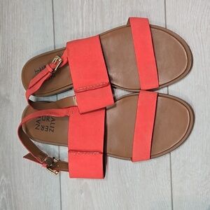 Naturalizer Women Fairfax Leather Ankle Strap Sandals Slide Flats shoes sz 9.5M