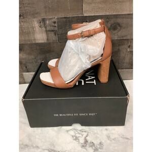 Naturalizer Women's 7.5W English Tea Leather Joy Dress Sandals Block Heel LE2-2