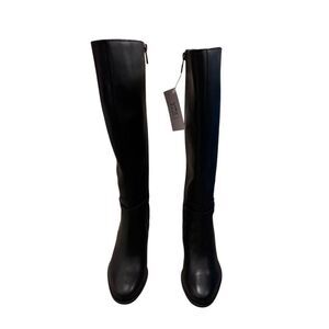 Keywords: Naturalizer, knee-high boots, black leather, extra wide calf, block heel, almond toe, women's boots, elegant design, zip closure, versatile footwear, new with tags.