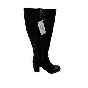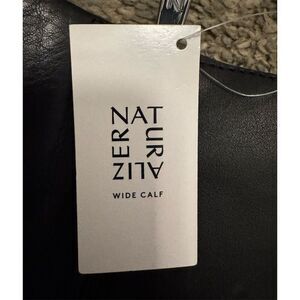 Keywords: Naturalizer, knee-high boots, black leather, extra wide calf, block heel, almond toe, women's boots, elegant design, zip closure, versatile footwear, new with tags.