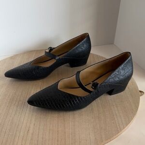 Naturalizer Women’s Black Mary Jane Heels Size 8.5 Textured Faux Leather Pointed