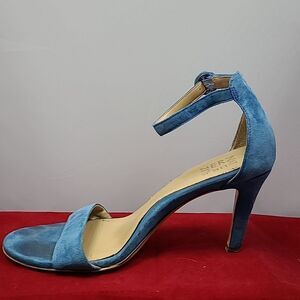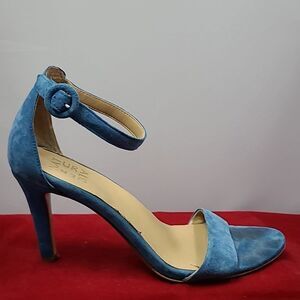 Naturalizer Women's Blue Suede Ankle Strap Adjustable Round Toe Stiletto Sandals