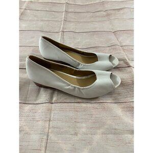 Naturalizer Women's Copper White Leather Peep Toe Low Wedge Sandals - 10M