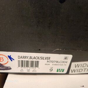 Naturalizer Women's Darry Slip-On Lightweight Lug Sole Heeled Loafer. NIB. Size 9 Wide. No rips/stains/scuffs/tears/peeling. NIB/Original box/packaging. Box has damage. Shoes are intact. Smoke free home. No odors. All offers are welcome. Colors are black/silver. The silver is like a distressed metallic over black, very nice. Thank you!