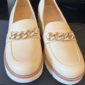 Forever loving: these women's casual shoes made with everlasting comfort. Lightweight and raised on a clean, lug sole you'll look good + feel good in this platform loafer. Women's slip-on shoes with metallic chainlink detail.
