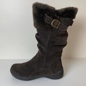 Naturalizer Womens Faux Fur Lined Side Zip Brown Suede Boots Size 7.5