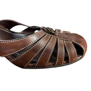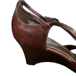Naturalizer Womens Leather Brown Ankle Strap Wedge Closed Toe Shoes sz 9.5