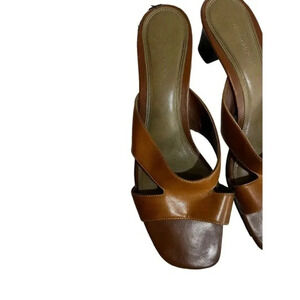 Naturalizer Womens Leather Open Toe Block Heel Slip On Sandals Brown Size 12 M