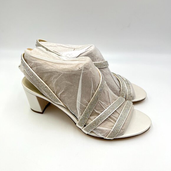 Naturalizer Womens Size 8 Vanessa 2 White Jeweled Dress Sandals Heels Shoes