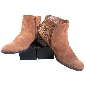 Naturalizer Zeline Women's Brown Fringe Suede Zip Ankle Boots Booties Sz 9.5 M