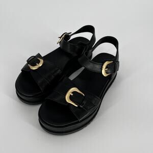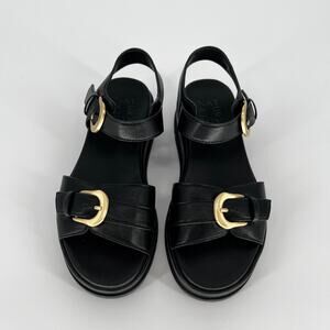 The Naturalizer Zen sandals in Black combine modern style with everyday comfort. Designed with a platform sole and wide gold-tone buckle accents, these sandals elevate casual looks while providing all-day support. The cushioned footbed and adjustable straps ensure a secure, comfortable fit.