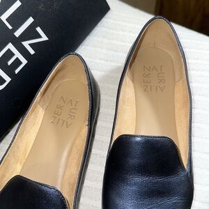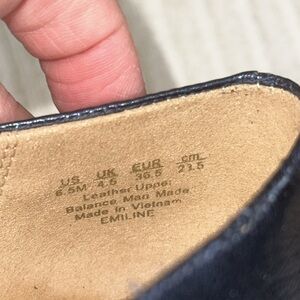 Preowned. With Box. These are very lightly worn. Color navy. Leather upper man-made balance. Made in Vietnam. Emiline