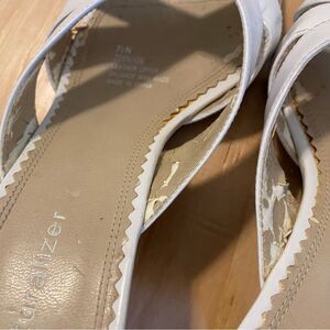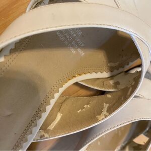 Summer! No major markings on the outside however there is wear on the inside. It does not fall off in pieces when worn and does not affect the comfort or quality of the shoe.