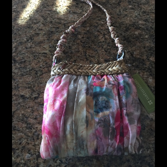 Naturalizer handbag. Measures 8 inches wide by 8 inches tall. Magnetic snap closure. One inside zipper pocket. Strap length 18 inches with a knot tied in it. Pretty floral pattern.