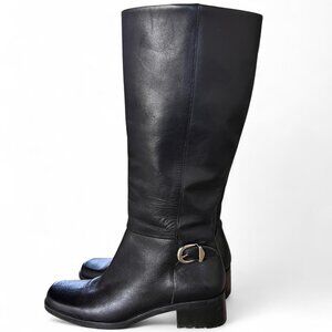 Naturalizer tall black leather riding boots with side zipper and silver buckle
