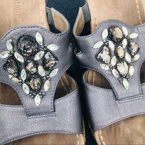 Naturalizer’s women’s silver slides with small wedge and beads on top open toe slits on the side size 9 medium