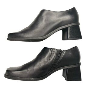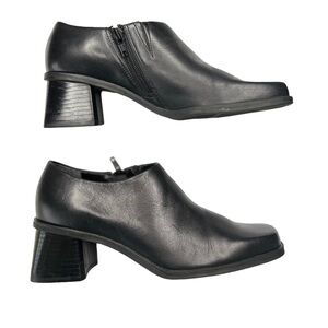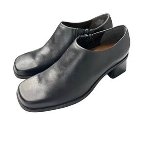 Naturalizer Ankle Booties Shoe Womens Size 7 Black Leather Block Heel Square Toe with side zipper