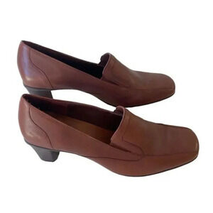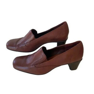 Naturalizer Comfort Block Heel Brown Leather Round Toe Shoe Pumps Size 8 Wide