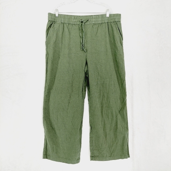 Naturals D&Co. Green High Rise Wide Leg Cropped Loose Fit Trousers 3451
