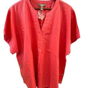 Naturals d & co Women’s Linen Blend Tunic Top Short Sleeve XL Quiet Luxury