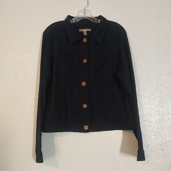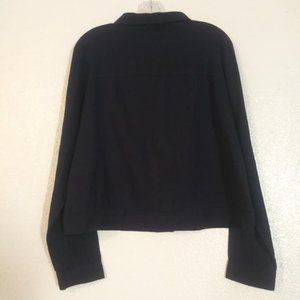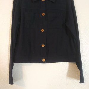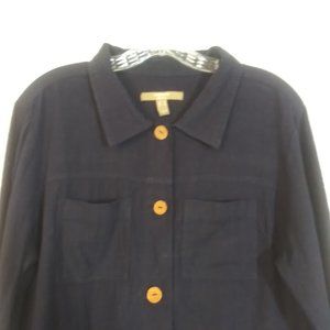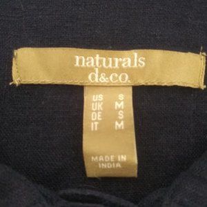 Naturals d&CO. women's size S navy blue linen blend long sleeve button up blouse, chest pockets